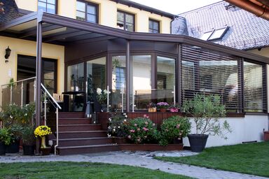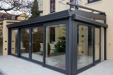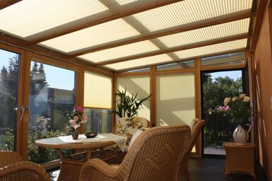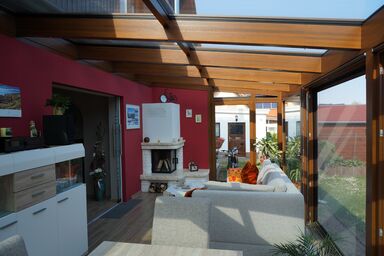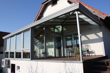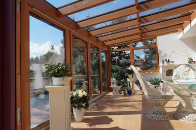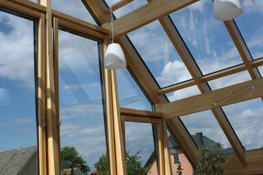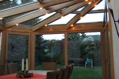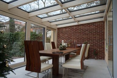 Lassen Sie sich von den vereinten Vorteilen von Holz- und Aluminium-Wintergärten überzeugen. Wir bieten eine breite Auswahl an unterschiedlichen Holzarten, Farben und Oberflächenstrukturen zur Individualisierung ihres Wintergartens.Ein offen gestalteter Wintergarten zum Wohnzimmer mit gemütlichem Ambiente laden zu jeder Jahreszeit zum Verweilen ein. Die äußere Aluminiumverkleidung schützt das hochwertige Holz dauerhaft vor Witterungseinflüssen. Faszinierende Kontraste werden durch verschiedene Materialkombinationen erzeugt. Außen Aluminium Grau Feinstruktur, innen edle Kiefer natur geben dem Wintergarten eine besondere Note. Bei Wintergärten mit innen liegendem Sonnenschutz ist der Einsatz von speziellen Sonnenschutzgläsern unabdingbar. Dabei sollten die fehlenden solaren Zugewinne unbedingt betrachtet werden!n erzeugt. Interessante architektonische Lösungen entstehen durch individuelle Planung und Fertigung! Große Decken, hohe Verglasungen bilden die Grundlage für eine offene großräumige Architektur. Die integrierte Lichtkuppel aus Glas sorgt für das notwendige Tageslicht im Dachbereich. Einzigartige Sonderkonstruktionen lassen sich vor allem im Bereich Holz-Aluminium verwirklichen. Das Holz bildet eine solide thermische Grundkonstruktion, wobei die äußere Aluminiumverschalung den absoluten Wetterschutz bildet.