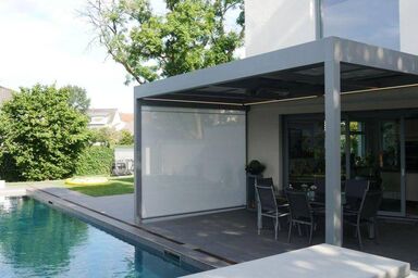 Unsere Pergolamarkisen bieten den perfekten Schutz vor Sonne, Wind & Regen. Die Systeme sind standardmäßig mit einem elektrischen Motor und einer Fernbedienung ausgestattet. Durch die Vielfalt an Tuchfarben und -Arten bleibt kein Wunsch offen.