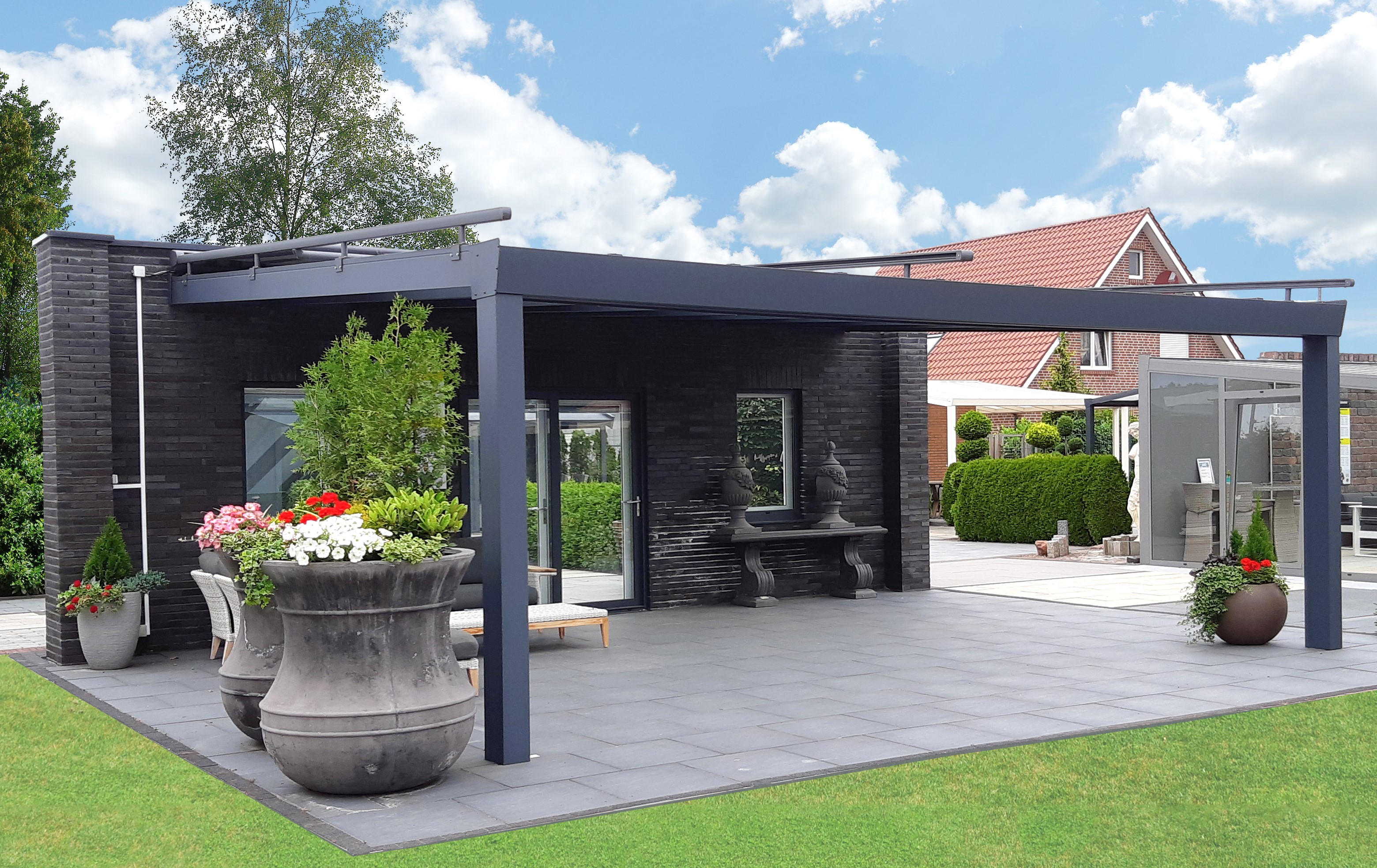 Moderne Formen, geniale Proportionen – gerade für größere Dächer findet das Dachsystem „Superior Edition“ gerade in der modernen Architektur seine Anwendung. Die acht Meter Spannweite der Traufe ist das exklusive Alleinstellungsmerkmal dieses Produkts und hält selbst ohne Mittelstütze einer erhöhten Schneelast stand.